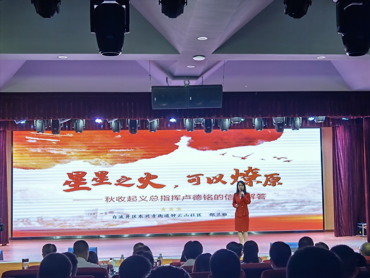 擂台赛中,沿滩区委党校带来的《增产赶运,以盐抗战—自贡抗战盐运史》讲述自贡盐商在艰苦的环境下,克服困难,积极响应党的号召,努力生产盐,展现出自贡人以盐抗战的历史担当。自流井区东兴寺街道参赛作品《星星之火,可以燎原—秋收起义总指挥卢德铭的信仰解答》展现出卢德铭勇于担当,敢于担当,善于担当的精神品格。