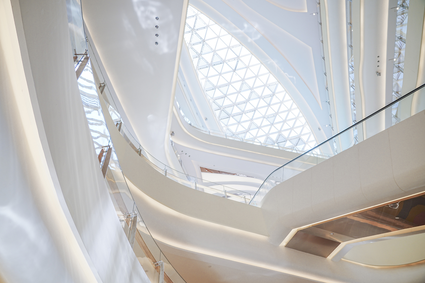 一是,项目建筑本身颇有看点,建筑设计出自gravity(嘉柏)和Aedas(凯达环球)等知名建筑设计机构,充分注重在地文化和自然禀赋,采用以毗邻的“沙河”为灵感的“丝带”元素设计外立面,外观现代大气且流畅,内部动线清晰,更在天花板等装潢设计上焕发细节之美。