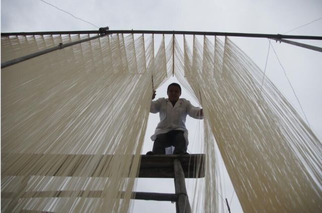 每当和煦的阳光照进中江县杰兴镇凯江河畔的觉慧村,40户人家组成的小村子,房顶就变成雪白一片,仿佛披上了一层“白纱衣”。走近仰头一看,才发现是一架架挂面,每一架都有4米多高。根根挂面,细如发丝。这就是当地名气响当当的“中江挂面”。家家户户以手工制面为生,这个背山面水的小村子,也被当地人亲切地唤作“挂面村”。而这门手艺,据说已流传千年。“中江手工挂面发源于宋代,至今已有1000多年的历史。”年过五旬的钟标稳,是中江手工挂面非遗项目传承人刘光初老人的门徒。他介绍说,明朝初年,做挂面的手艺就已在民间流传。明清时候中江挂面行销各地,道光年间中江挂面达到全盛时期。清代诗人王朗山在《玉尺山人诗抄》中写道:“中江烧酒中江面,一路招牌到北京”,正是此番景象的写照。蜀中名谣“中江挂面保宁醋,橘子出在赵家渡”,说的也是中江挂面与阆中的保宁醋、金堂县赵镇的橘子一样,很早便有了广泛的知名度。民国1931年版《中江县志》记载中有相关描述:“中江挂面,面细如丝,长八九尺,截两头,取中段,名曰腰面,又称银丝面……色白味甘,食之柔滑,细而中空,堪称洁、白、净、干、细五绝。”而中江为何会盛行制作挂面?据说则和一名北方县令有关。相传,北宋淳化年间,中江县令崔谷是北方人,喜好面食。除了要求味道好,县令还要求厨师将面条做到最细。但厨师想尽千方百计,做出的面条还是达不到要求,常常受到县令的训斥。一天,厨师为县令炖羊肉,用竹筷插入羊的眼窝取出羊头时,看见汤水浓汁成为一条线,越来越细,慢慢地流入锅内。从这一偶然的现象中,他突然得到启示。于是他将吃完羊肉的羊头骨架置放在案板上,两个眼洞分别插进竹筷,将已经发酵,原本准备用来蒸馍的面团搓成粗湿面条,两头各缠绕在两根竹筷上,两手各执一筷,轻轻地拉扯,面条果然越来越细。厨师将细面汤宽火旺煮出,县令尝过后大加赞赏,随后常以这种细面在县衙宴请社会名流。这个方法也逐渐传到了民间。经不断地总结改进,中江逐渐形成了一套完整的手工制面工艺。至今,一代一代的挂面师傅都把挂面“上竹”所用的木头架称作“羊头架”。中江挂面讲究自然晾晒,顺天而成。如今,每一根中江手工挂面都要历经和面、开条、盘条、发酵、抻条、上竹、扑粉、晒面等18道纯手工工序。因为气温的原因,每一年中江挂面的制作时间,只有短短五六个月。挂面师傅则多为“夫妻档”。因工序繁多,看天吃饭,正宗的中江手工挂面产量很小。通常在天晴的情况下,从下午4点开始进行和面工作,当天晚上夫妻二人几乎不能睡觉,每隔一两个小时就有一次高强度的劳动。一天16个小时下来,即使夫妻二人通力合作也只能做100来斤挂面。做起来费时费力,吃起来自然也有讲究。先熬一锅鸡汤,或者煎一个蛋,白水煮面,水尽量宽,起面前放点豌豆尖,再撒点葱花。这是中江挂面的地道吃法。遇到外地人买面,当地人就会反复叮嘱“煮面水宽些,千万不能放盐”。而验证中江挂面是否正宗,当地人也多会骄傲地分享一个小秘诀:“正宗手工面可以回锅”。古法炮制的中江挂面入味劲道,光滑柔软,久煮不糊。没吃完的面,沥水放到第二顿,依旧根根分明。在一代接一代的传承下,2010年,中江挂面的制作工艺被列入四川省非物质文化遗产名录。尽管不断走上全国和国际舞台,但与其他非物质文化遗产一样,中江挂面也面临着“生存危机”。当地流传着这样的一首民谣,“有儿别学挂面匠,有女莫嫁挂面郎,吃了许多冷菜饭,睡了许多没足床,熬更受夜苦难尝。”如今,年轻人们更不愿意为挂面去吃苦受累。品尝这个穿越千年的味道时,这门可以吃的手艺如何继续流传?值得更所关注和思考。 【未经授权,严禁转载!联系电话028-86968276】