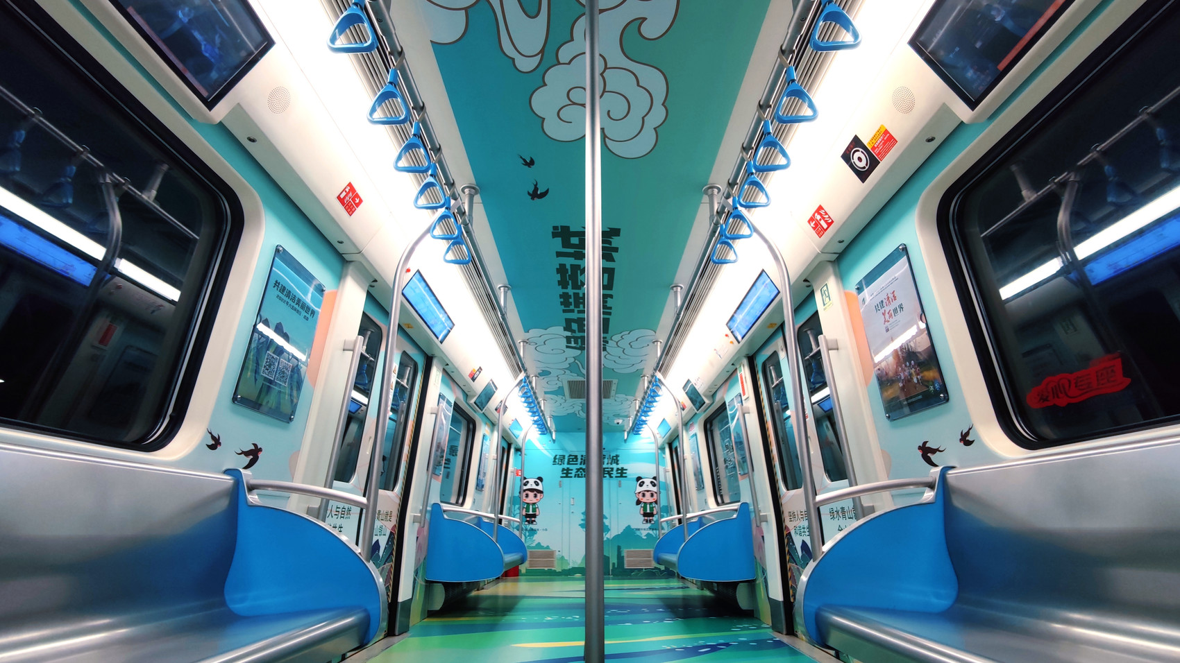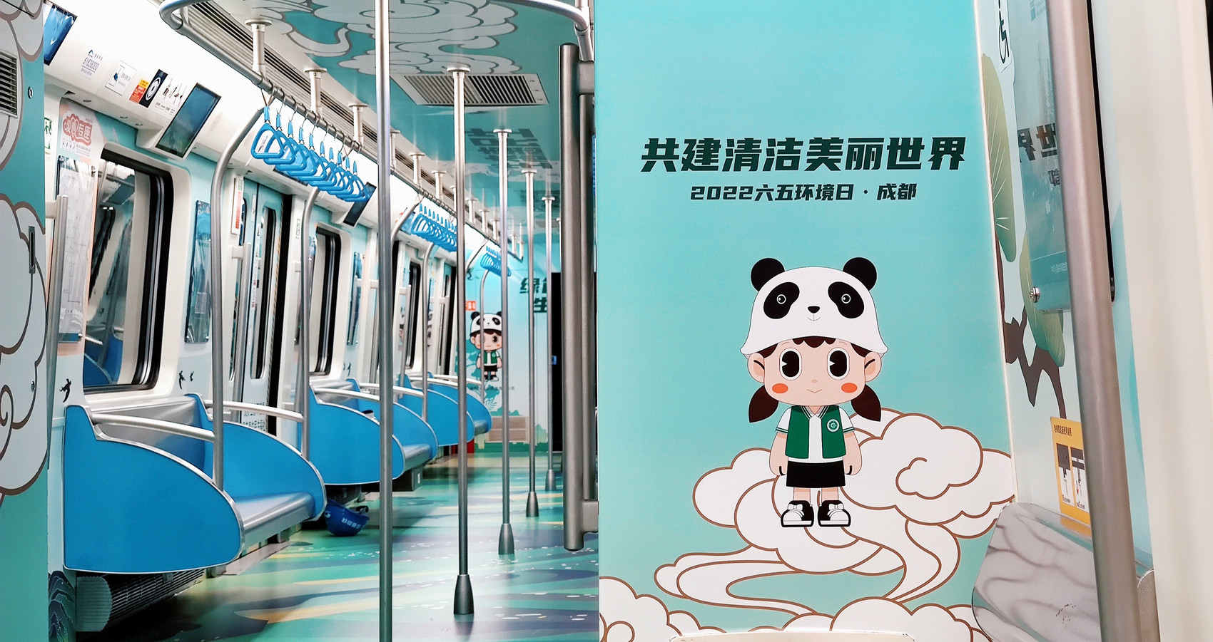 绿启蓉城,低碳出行。活动期间,“生态成都”号主题列车上线成都地铁1号线,列车以“绿色满蓉城 生态惠民生”为主题,六大车厢划分为六大篇章,用“山、川、林、田、湖、草”的古风手绘勾勒出绿意盎然、碧水环绕的大美蓉城画卷。