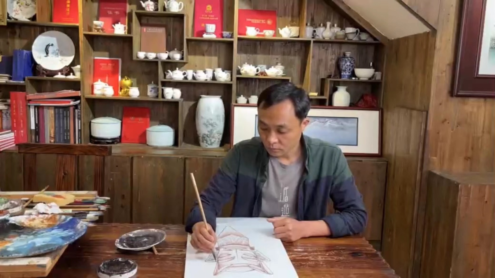 作为国家一级技师、江西省非物质文化遗产代表性传承人,马中举仔细查阅三星堆文物资料,从三星堆黄金面具获得了创作灵感。“陶瓷绘画将文物原型与现代图案结合起来,让远古文明以新的方式呈现,达到了意想不到的效果。”