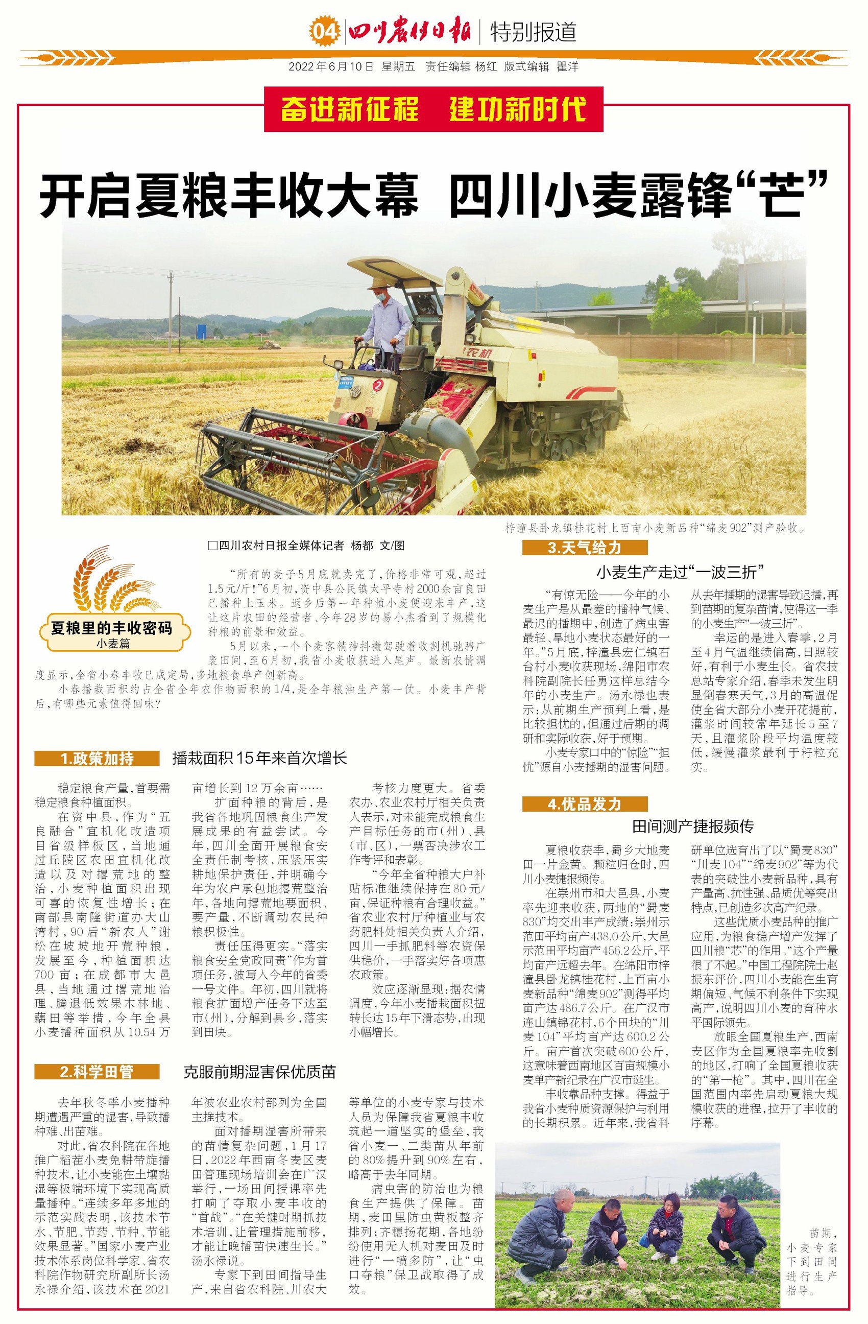 夏粮收获季,蜀乡大地麦田一片金黄。颗粒归仓时,四川小麦捷报频传。