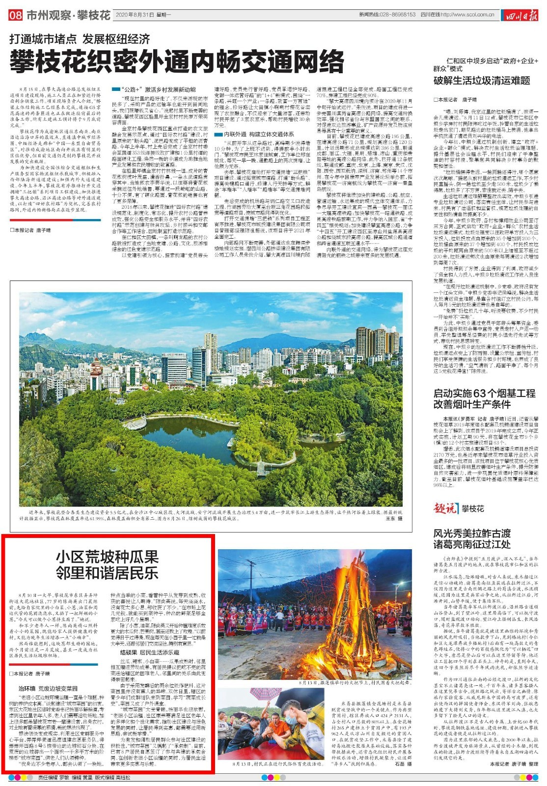 8月10日一大早,攀枝花市东区弄弄坪街道大花地社区,77岁的陈尚英出门晨练前,先给自家院里的小白菜、小葱、油菜和周边代管的花圃浇浇水,又掐了一把鲜嫩的小葱,“今天可以做个小葱拌豆腐了。”她说。