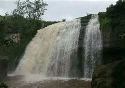 出富顺县城往南经琵琶镇,只见牟溪河上建于清朝嘉庆年间、一座叫通济桥的石拱桥,被近日的河水淹没了桥洞。我知道这河里涨水了。仿佛间隐隐约约听见一阵阵哗啦啦的流水声,经打听,才知道是附近的响水洞瀑布的流水声。