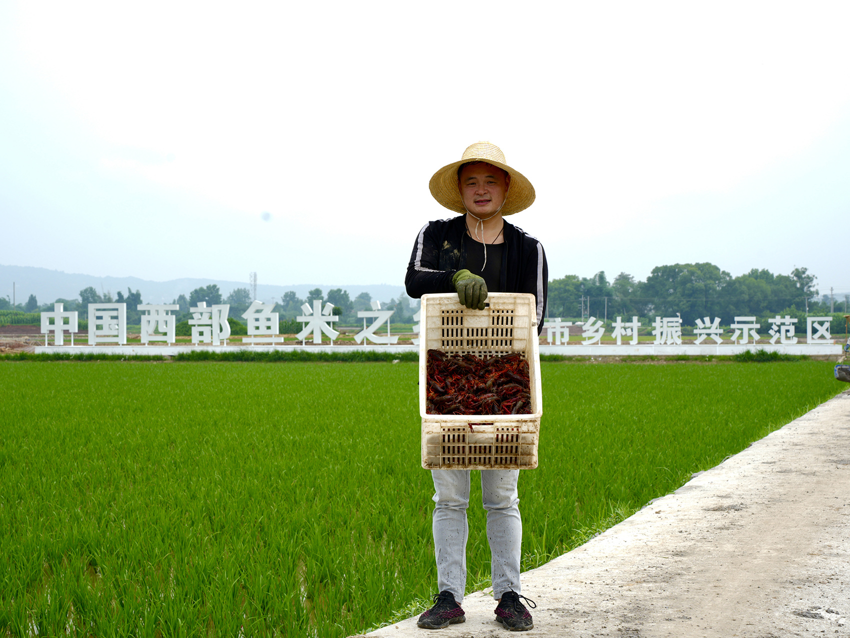 距隆昌城区不到10公里的普润镇印坝村,就是端上“金饭碗”最早的受益者。全镇已累计建成稻渔基地1万余亩,其中稻虾9000余亩,小龙虾年产量已达250万斤,产值6000万元左右,有效带动群众增收致富。