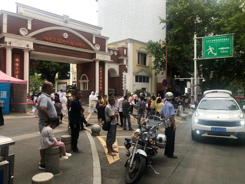 泸州外国语学校大门口,交警正在执勤,维护秩序。陈向前摄