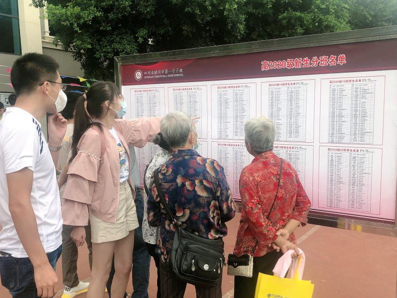张鑫是泸州外国语学校高一新生,今天一早父亲张远送他前来报到。此时两人刚刚核对好分班信息,准备去学校新食堂办理报到手续然后入住学生宿舍。张远说:“娃娃读住校,害怕学校里有些东西买不到,就带的比较齐全,被子都带了两套,还有日常洗漱的这些!”