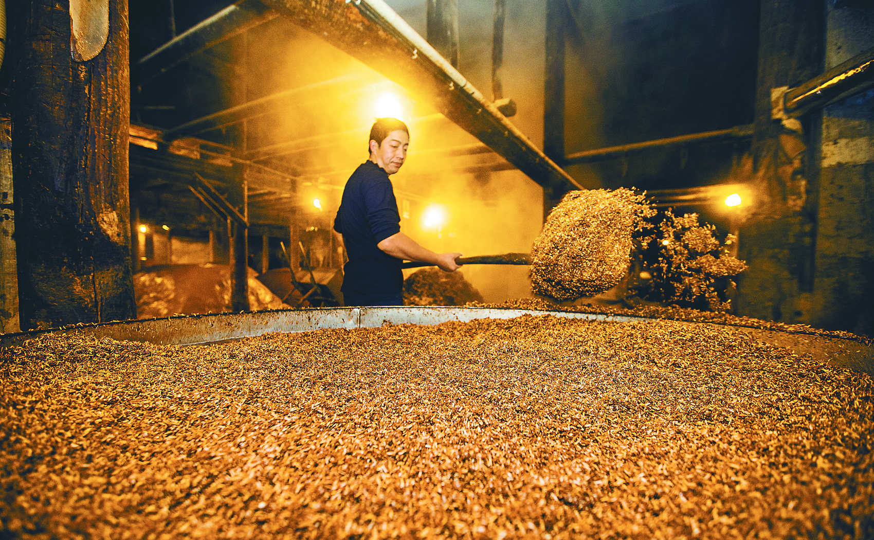“开窖—分层起糟—投粮润粮—加糠—分层上甑—蒸馏取酒—出甑—沸点量水—堆润—摊凉—拌曲药—入窖……每一步都要精心把控,容不得半点疏忽,任何一个环节出问题都会影响质量。”屈万聪介绍。