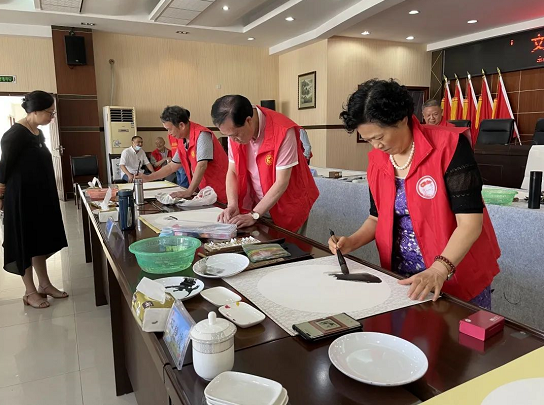活动在中国书法家协会会员、著名书法家、95岁高龄的李果青挥毫创作《沁园春•雪》中拉开序幕。随后,书画家们纷纷挥毫泼墨,执手中之笔,抒心中之情,或挥洒自如的行书,或隽秀整齐的楷书,或遒劲有力的草书,或古朴典雅的篆书,或大气雅致的隶书,或栩栩如生的绘画,各展所长,尽显韵味。在2个多小时的活动中,书画家们共创作40余幅作品,现场萦绕着浓浓的文化气息。