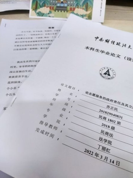 作为民商法专业本科毕业生,苏正民的《论志愿服务的政府责任及其立法规范》毕业论文写了2.5万余字,其中致谢部分有6000多字。