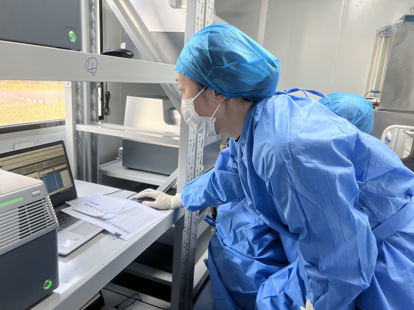 四川援上海核酸检测队队员、雅安市人民医院检验科医生李玲正在实验室内工作。受访者供图。