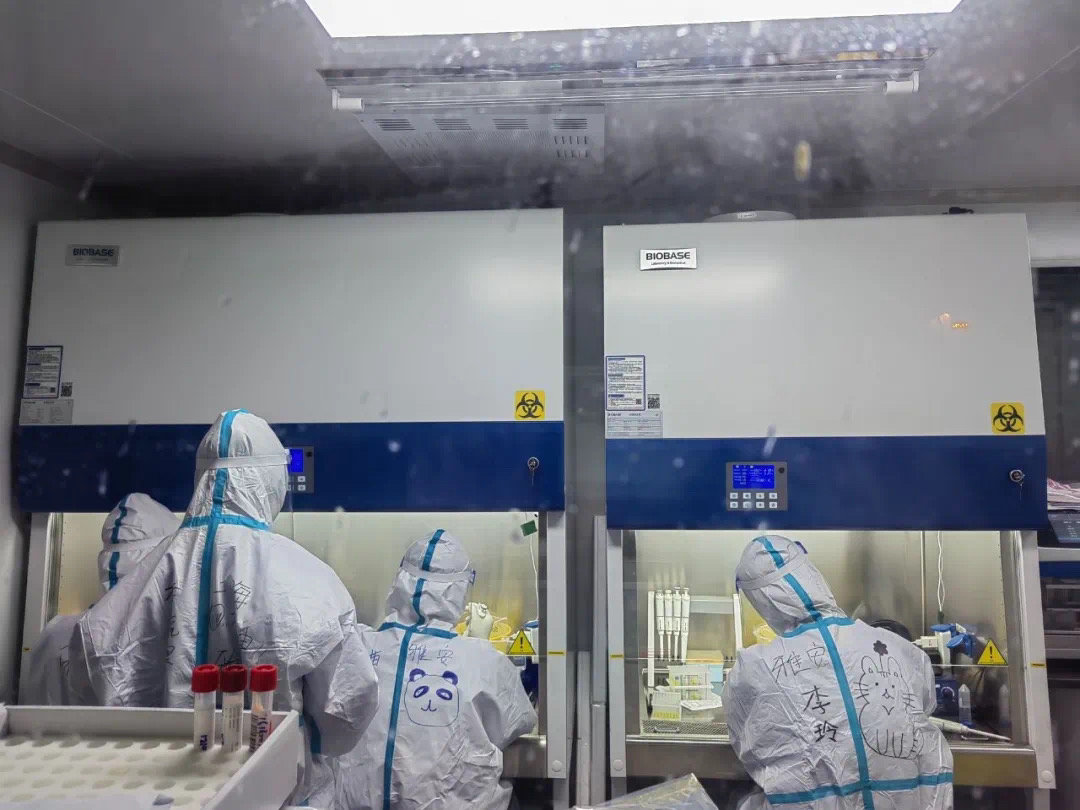 四川援上海核酸检测队在一线工作。省卫健委供图
