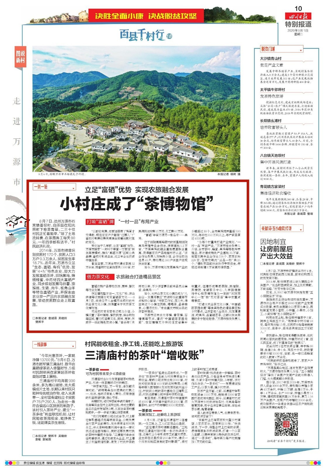 “打造大巴山茶文化小镇、‘中国硒部茶园走廊’等独具特色的精品景区和乡村景点,让游客观八台日出、戏龙潭清流、吃黑鸡、品富硒茗茶,让群众脱贫奔康的步子越走越稳。”万源市相关负责人说。
