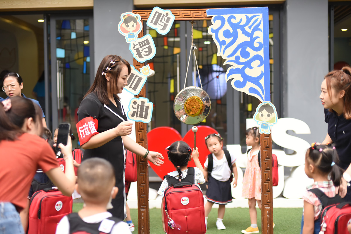 在校园内,川报观察记者看到一个“鸣锣处”,这是学校特意为孩子们设置的“打卡地”。“阔别一个暑假,有些小朋友可能还没收心。孩子们在这里鸣锣,可以给新学期加油打气,也提前感受幼儿园的氛围。”机关三幼园长熊玫介绍道。
