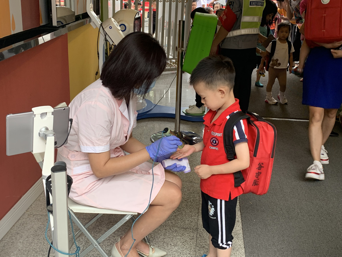 “小朋友们不要慌!一个一个走哈,保持间距!”9月1日,在新学期开学的第一天,成都市机关第三幼儿园赢来了久违的萌娃。400余名大中班的小朋友背着书包,在老师们的指引下,分批次接受体温检测、洗手消毒等程序后有序进入校园。