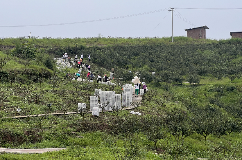 演出现场之外,双凤花椒现代农业园区里同样热闹非凡,20多名工人正在园区忙着采摘。有的工人则将一框框青花椒装车运出园区,他们要在7月中旬完成全部青花椒的采摘。