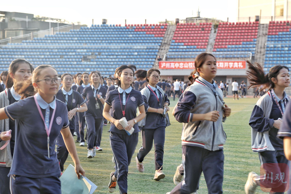 9月1日早上7点20分,泸州高中的足球场上响起国歌,学校全体师生肃立、行注目礼。新学期的开学典礼暨优秀毕业生颁奖典礼也拉开序幕。