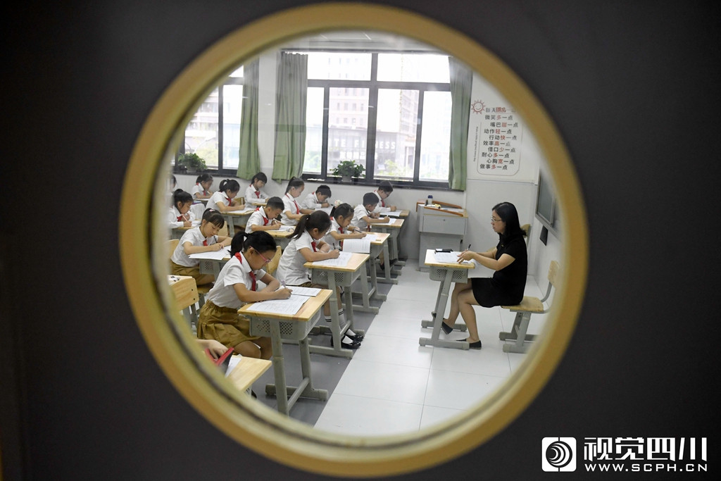 9月1日,在成都外国语学校高新美年校区,小学生课堂上做作业。