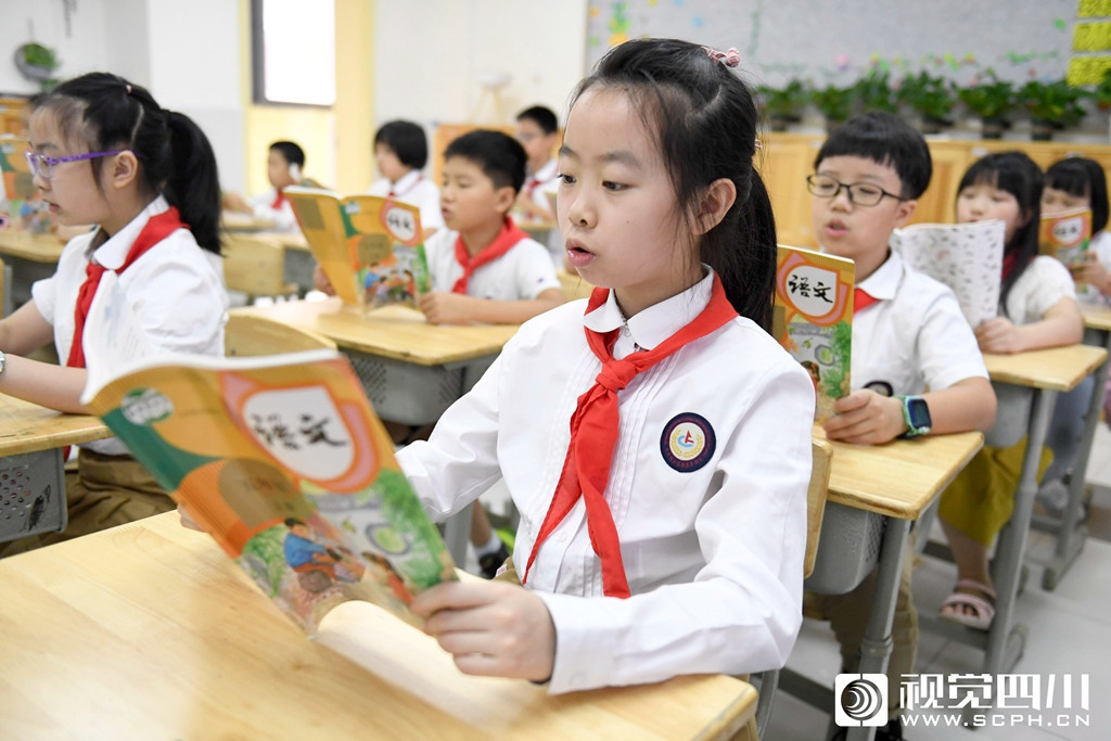 9月1日,在成都外国语学校高新美年校区,小学生课堂上阅读课文。