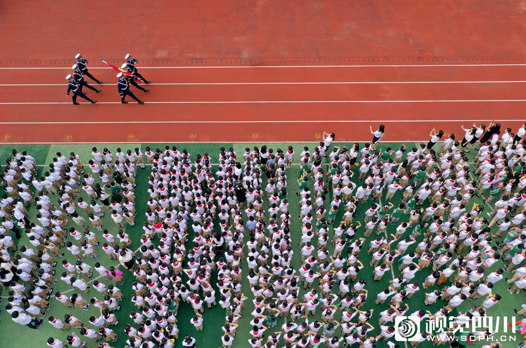 9月1日,成都外国语学校高新美年校区在开学典礼上举行升旗仪式。