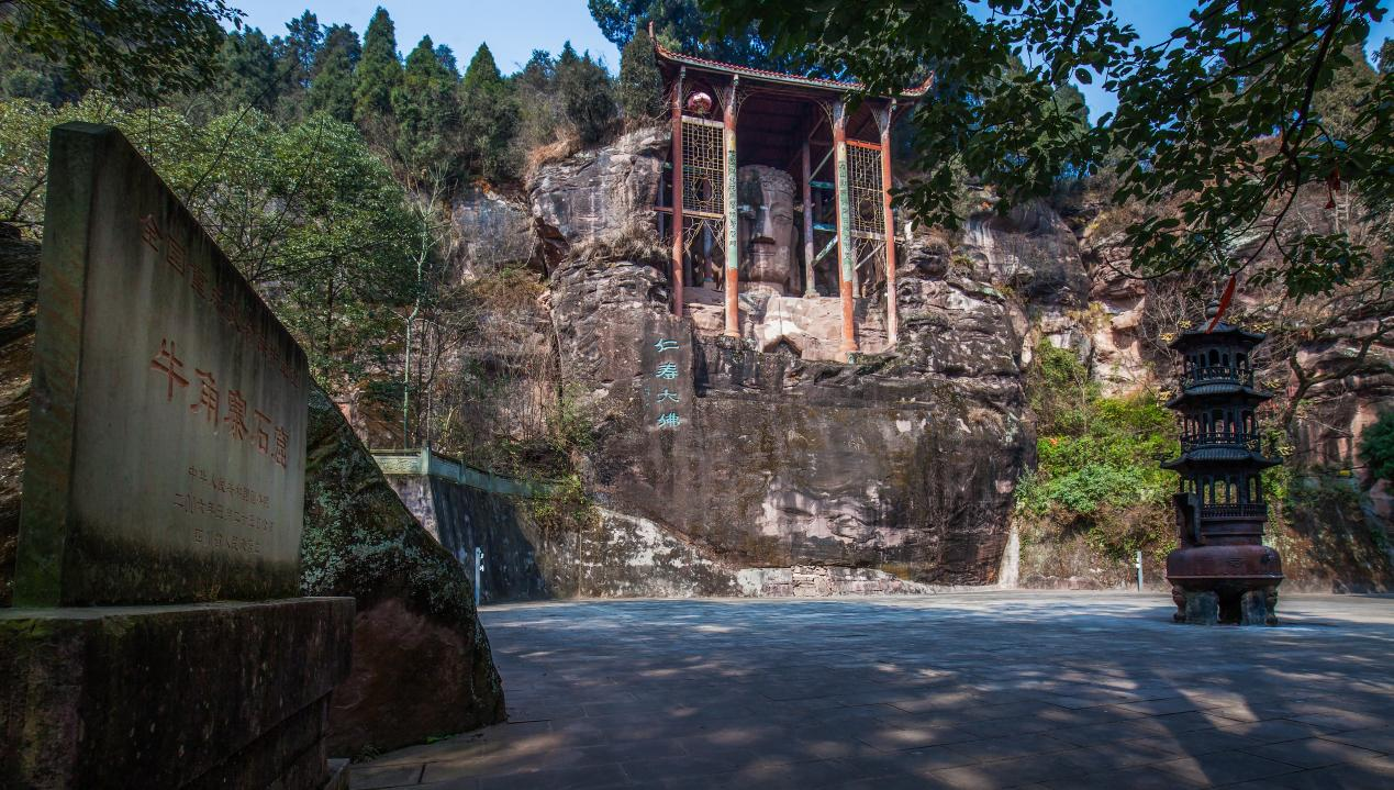 牛角寨石窟位于眉山市仁寿县高家镇,现有造像101龛1519尊,碑记一通,分布在牛角寨、坛神岩近两万平方米的范围内。牛角寨有造像46龛1134尊,以佛教造像为主;坛神岩造像55龛385尊,以道教造像为主。