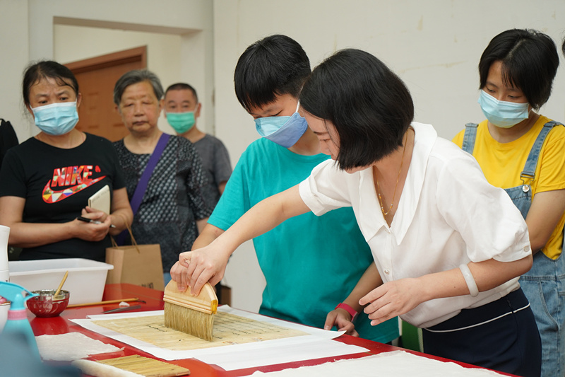 “来来来!大家都来试试。”四川省档案馆档案保护处副处长黄秦邀请川观粉丝们都来体验文物修复,大家排着队,为文书刷浆、排出气泡、蒙上皮纸。黄秦说:“大家知道吗?经过这样处理的档案,可以保存上百年”,赢得现场一片掌声。