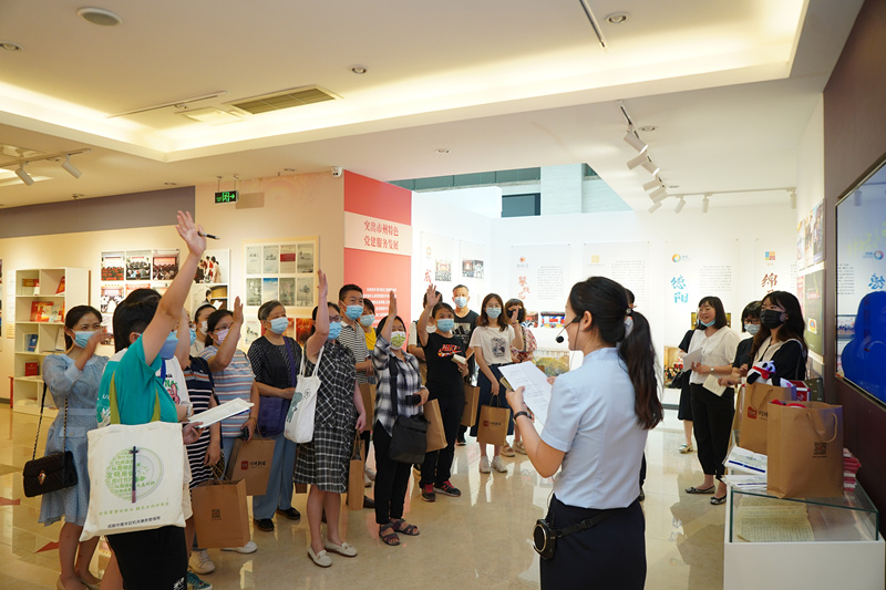 “国际档案日是每年的几月几日?”“新《档案法》实施的时间是?”“四川省档案馆的镇馆之宝是哪份档案?”……工作人员提前准备的10个问题,都被认真参观完所有展览的川观粉丝们一一答对,大家喜滋滋地领走了档案文创U盘、档案文创书签、川观川宝熊猫、三星堆联名口罩等奖品、并集体合影留念,结束了2个小时的档案馆体验之旅。