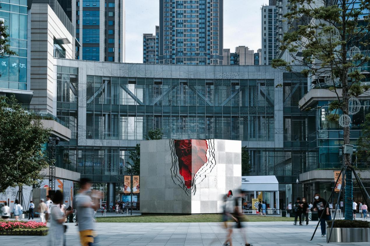 形如魔方的新媒体艺术装置“时空剥落²”,也在6月亮相成都万象城的万象广场中心,将建筑、视觉、声音、光影等结合,颇具先锋前卫之感。