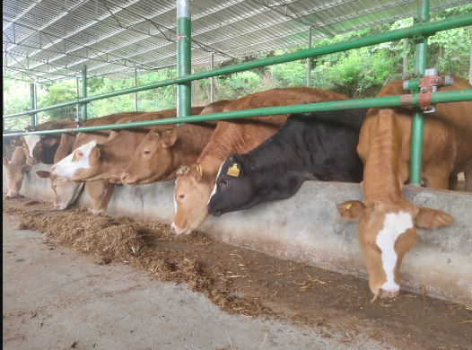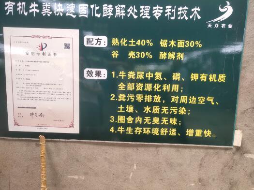 “这得益于公司使用了一种新技术——畜禽粪污快速固态化酵解技术。”程栋梁介绍。该技术基料主要为农作物及植物残枝落叶和 风化土壤,加入复合微生物菌群,将复合微生物菌群覆盖到牛床垫料后,依靠肉牛自然活动完成粪污与酵解原料的混合搅拌,制成冬暖夏凉的牛床垫料。牛床垫料能对粪尿快速酵解,无污水排放,无恶臭气味,对周边环境无明显污染,真正实现粪污“零排放”。养殖全过程环境良好,既减污,牛生活在这样的环境里也长得快。