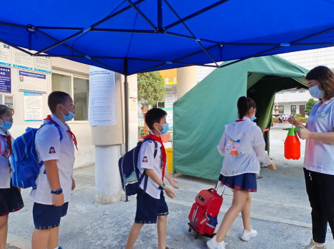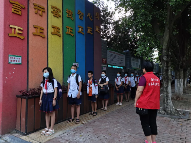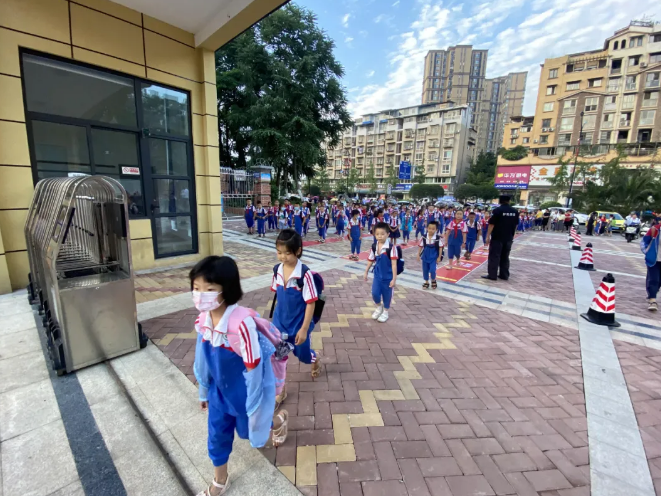 在老师的指引下学生依次进入校园