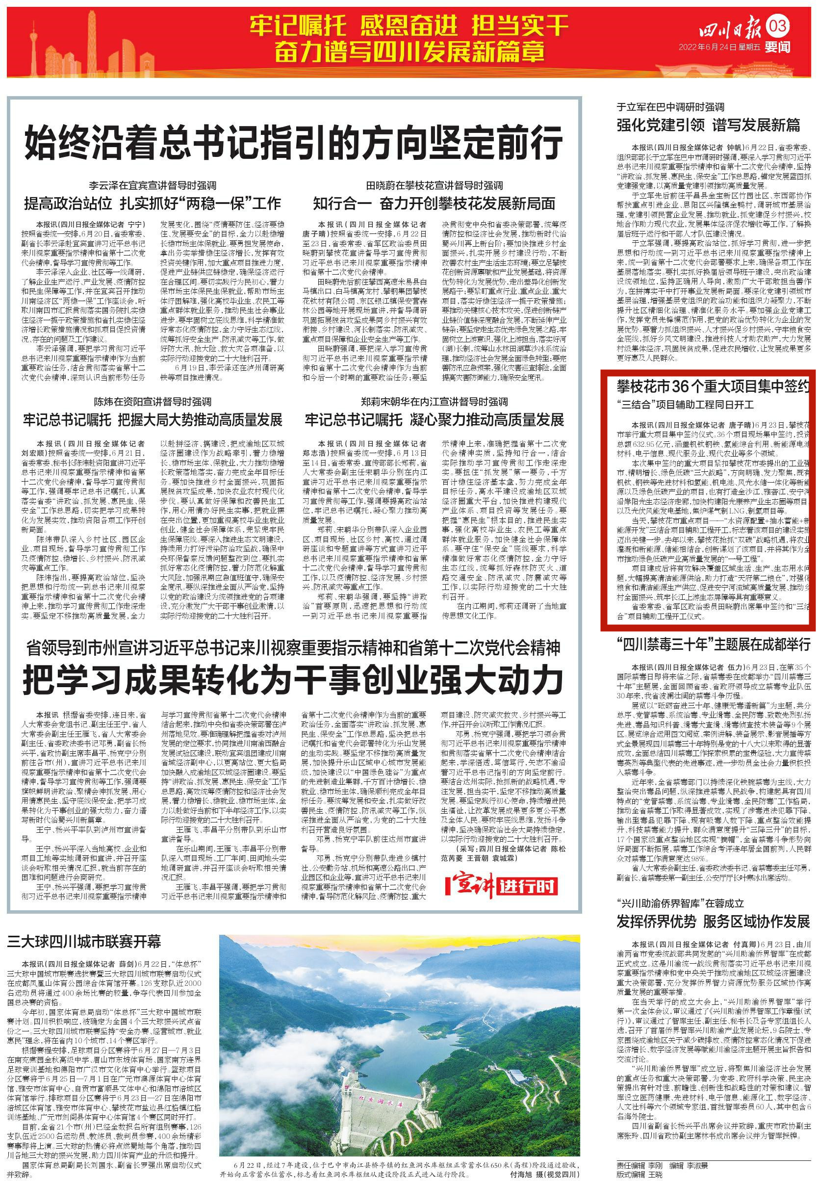 6月23日,攀枝花市举行重大项目集中签约仪式。36个项目现场集中签约,投资总额632.95亿元,涵盖钒钛钢铁、氢能综合利用、新能源电池材料、电子信息、现代服务业、现代农业等多个领域。