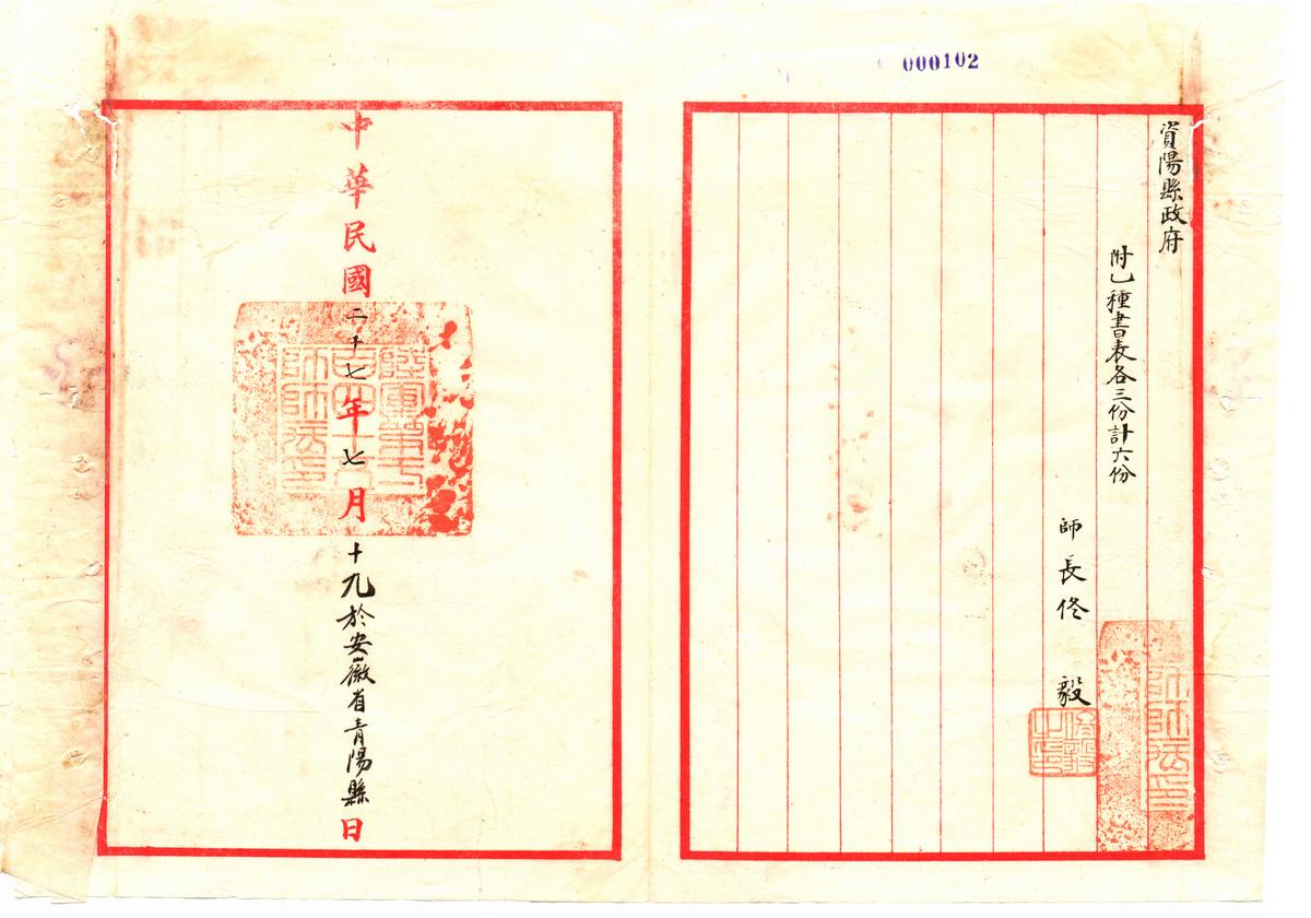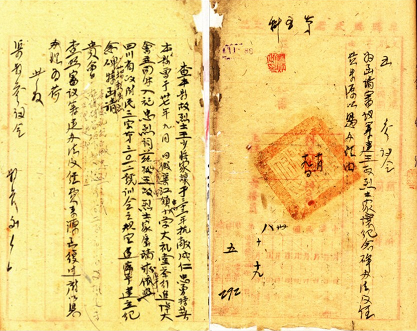 邻水县档案馆馆藏为陈绍堂将军建立纪念祠的档案(右起第四列)