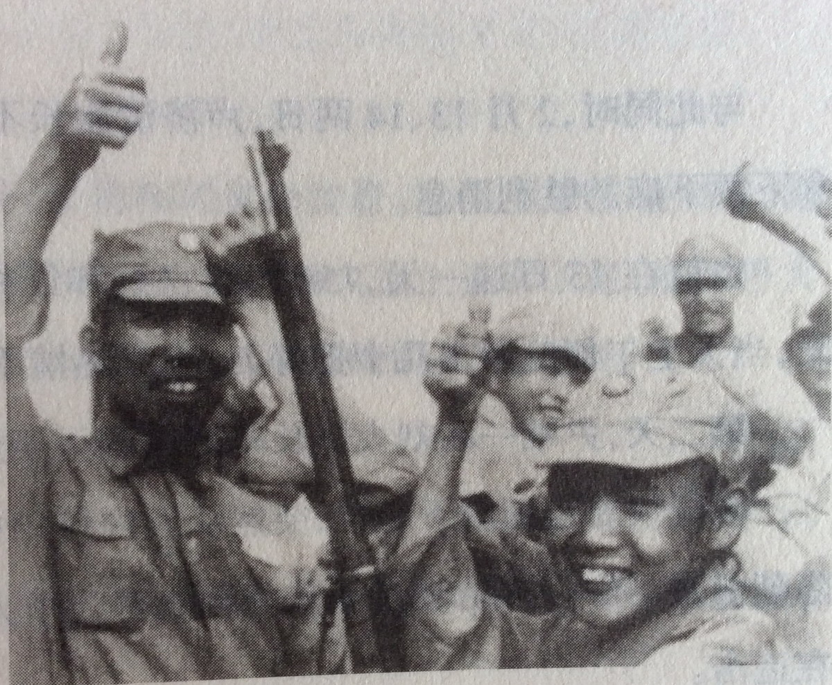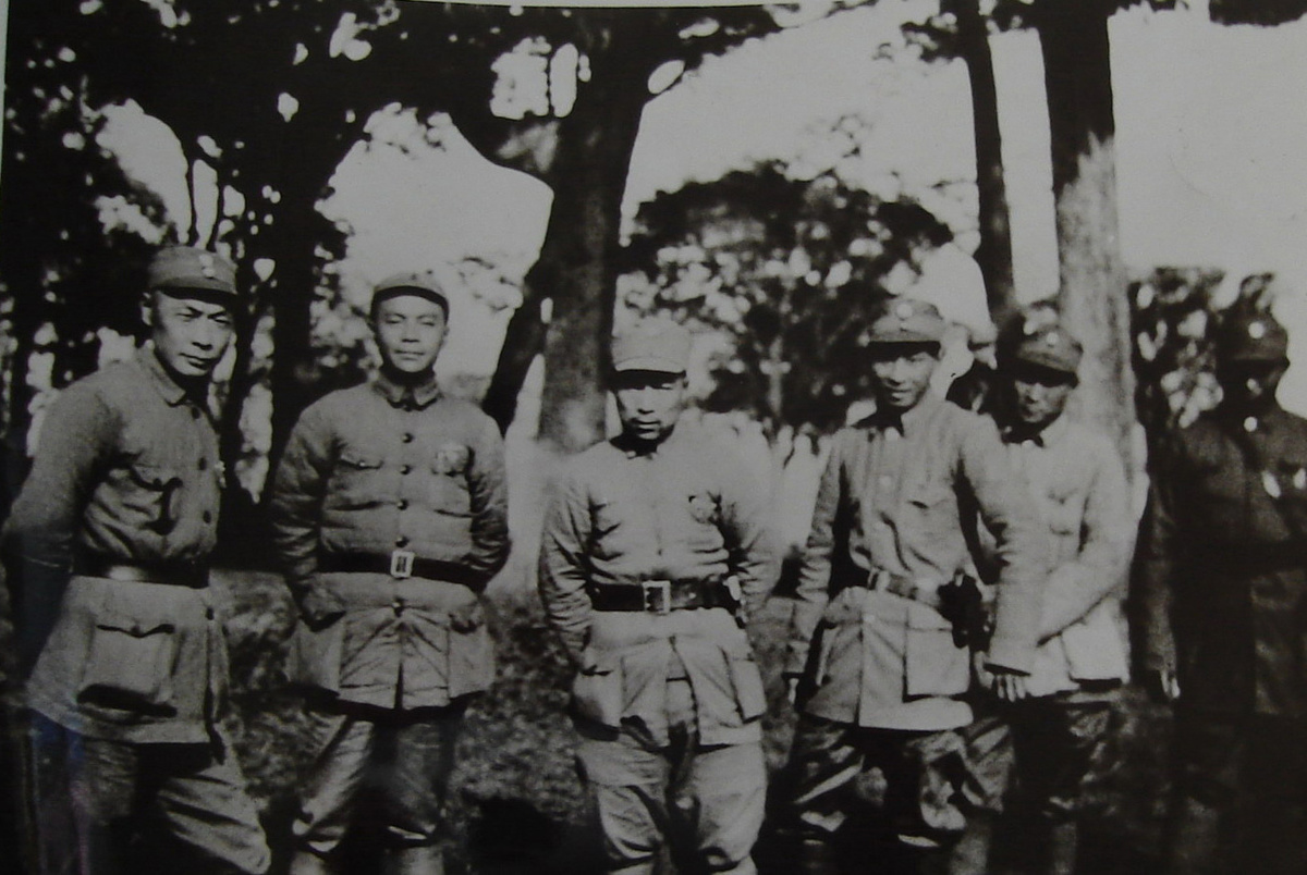 1939年5月1日,新四军六团东进前夕,陈毅、刘炎、刘飞、叶飞、吴焜、乔信明等人合影(左起)