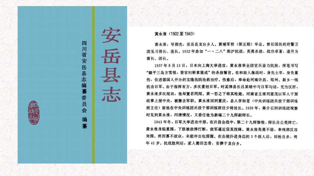 《安岳县志》(四川人民出版社1993年第1版)关于黄永淮的传记