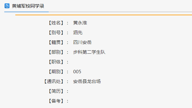 浙江档案网黄埔军校同学录中黄永淮的信息