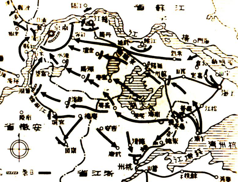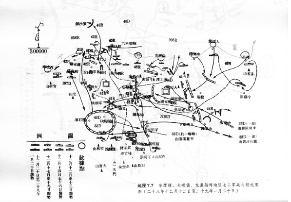 1939年12月12日至1940年1月20日第72军在辛潭铺、大畈镇、龙港船埠地区战斗经过要图