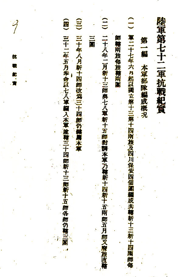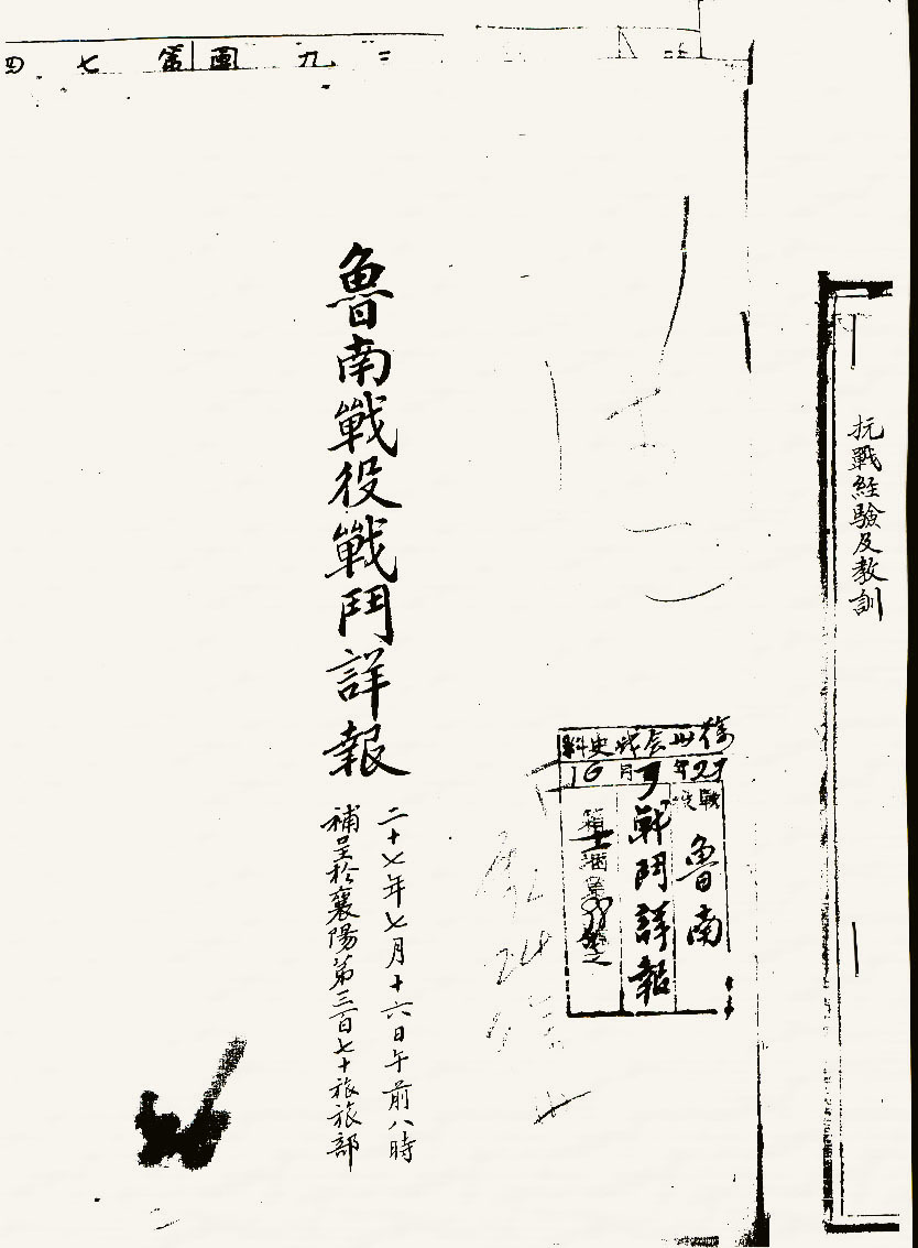 1937年10月24日,第41军122师奉命增援娘子关,在平定县东、西回镇和马山村一带与日军展开恶战。图为第22集团军邓锡侯部娘子关会战战斗详报