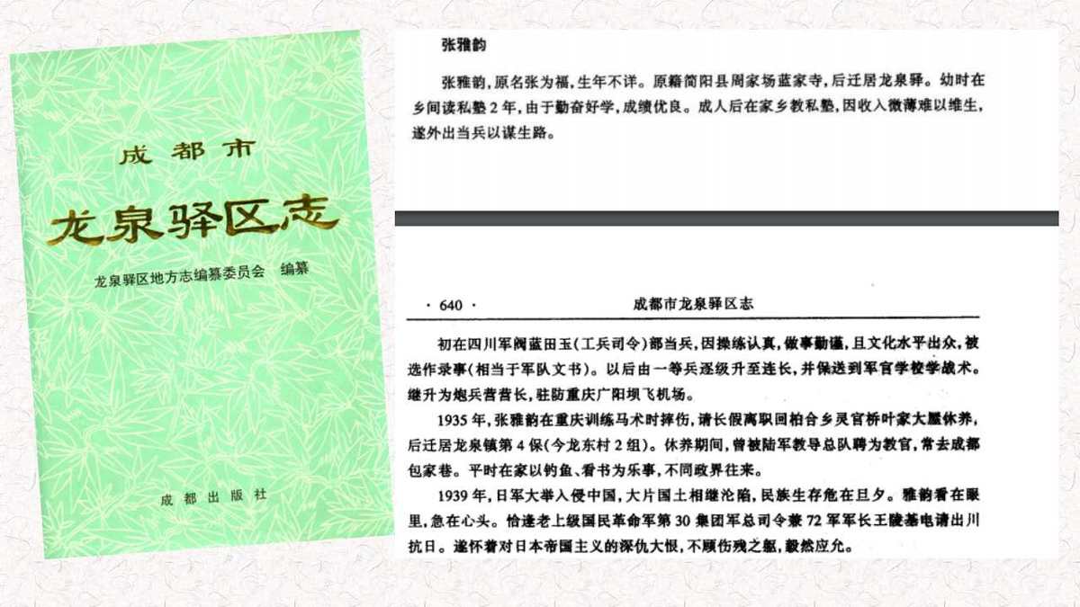 《龙泉驿区志》(成都出版社1995年12月第1版)中关于张雅韵的传记