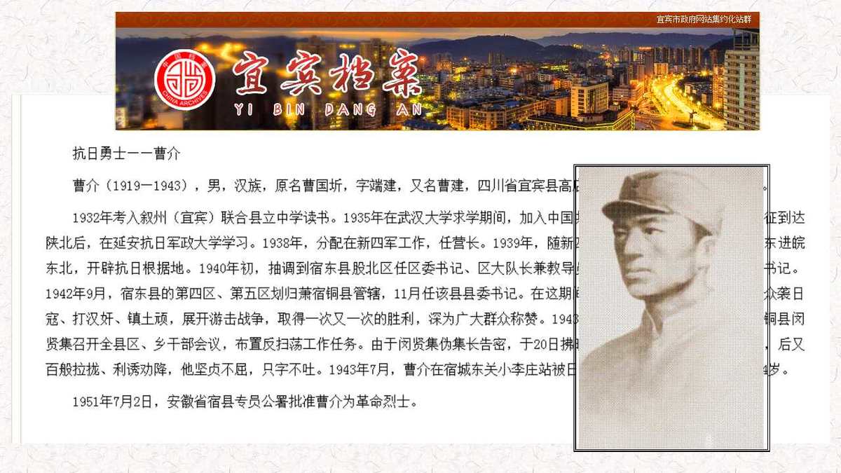 曹介(1919—1943),四川宜宾(今宜宾市翠屏区)人,中共萧宿铜中心县委书记。