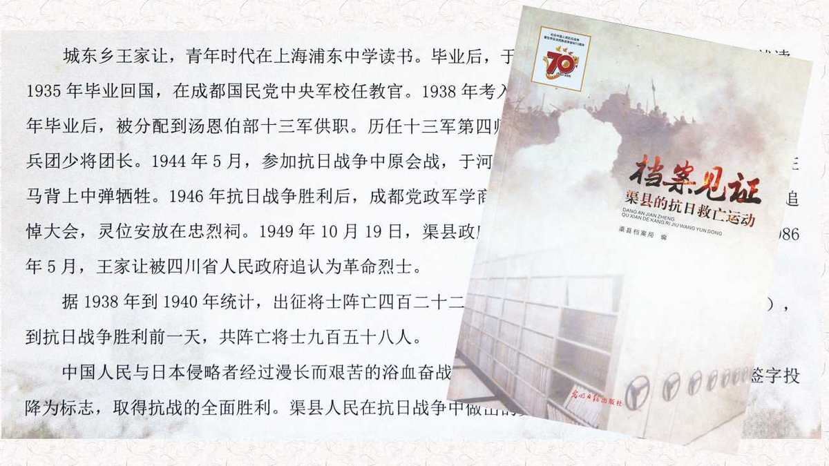 渠县档案馆编著的《档案见证--渠县的抗日救亡运动》中有关王家让烈士的内容