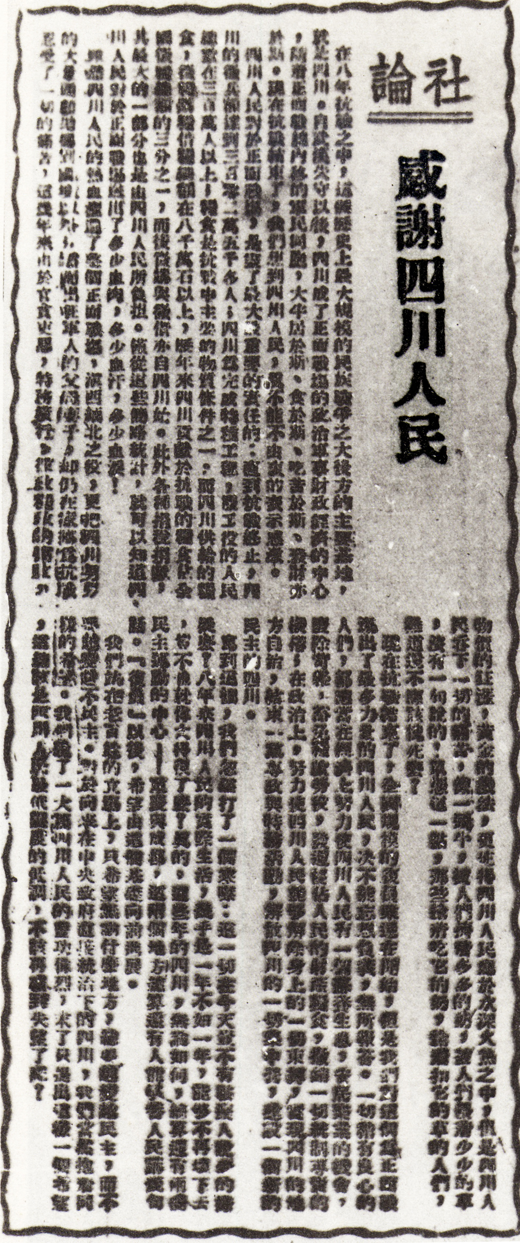 《新华日报》1945年10月8日社论《感谢四川人民》。