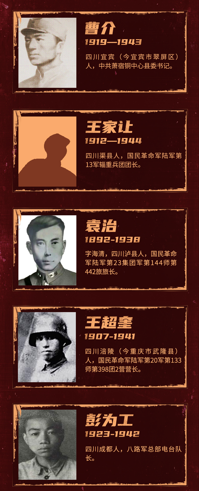 本文史料来源《川人抗战档案文献图集》《四川省志·地理志》《安岳县志》《双流县志》《抗战綦江》《屏山县志》《龙泉驿区志》等文献,鸣谢晋察冀民族抗日研究会、浙江省档案馆、自贡市档案馆、宜宾市档案馆、泸州市档案馆、宜宾市赵一曼纪念馆、武隆县档案馆、成都市郫都区档案馆、邻水县档案馆、渠县档案馆、蒲江县委宣传部、蒲江县档案馆、成都英烈网、四川省黄埔军校同学会联工委委员乔育新提供支持。