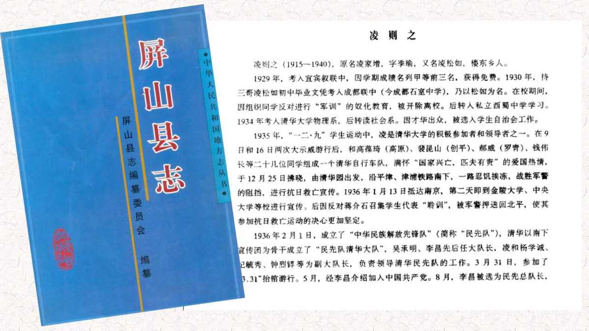 《屏山县志》(四川人民出版社1998年10月第1版)中关于凌则之的传略