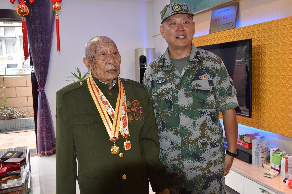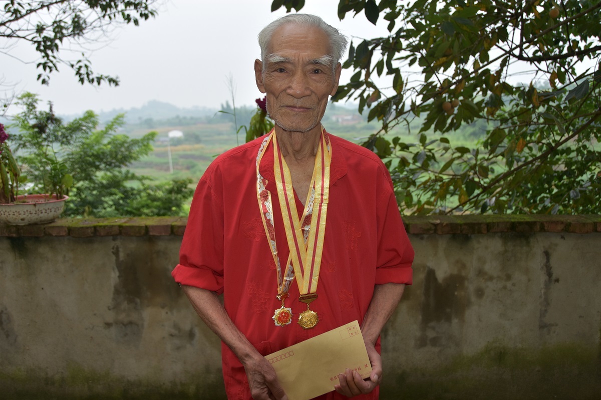 梁定江今年95岁,曾参加过缅甸抗日作战和国内抗日作战,从荣县民政局离休后在家里安度晚年,老人耳聪目明,身体健康。