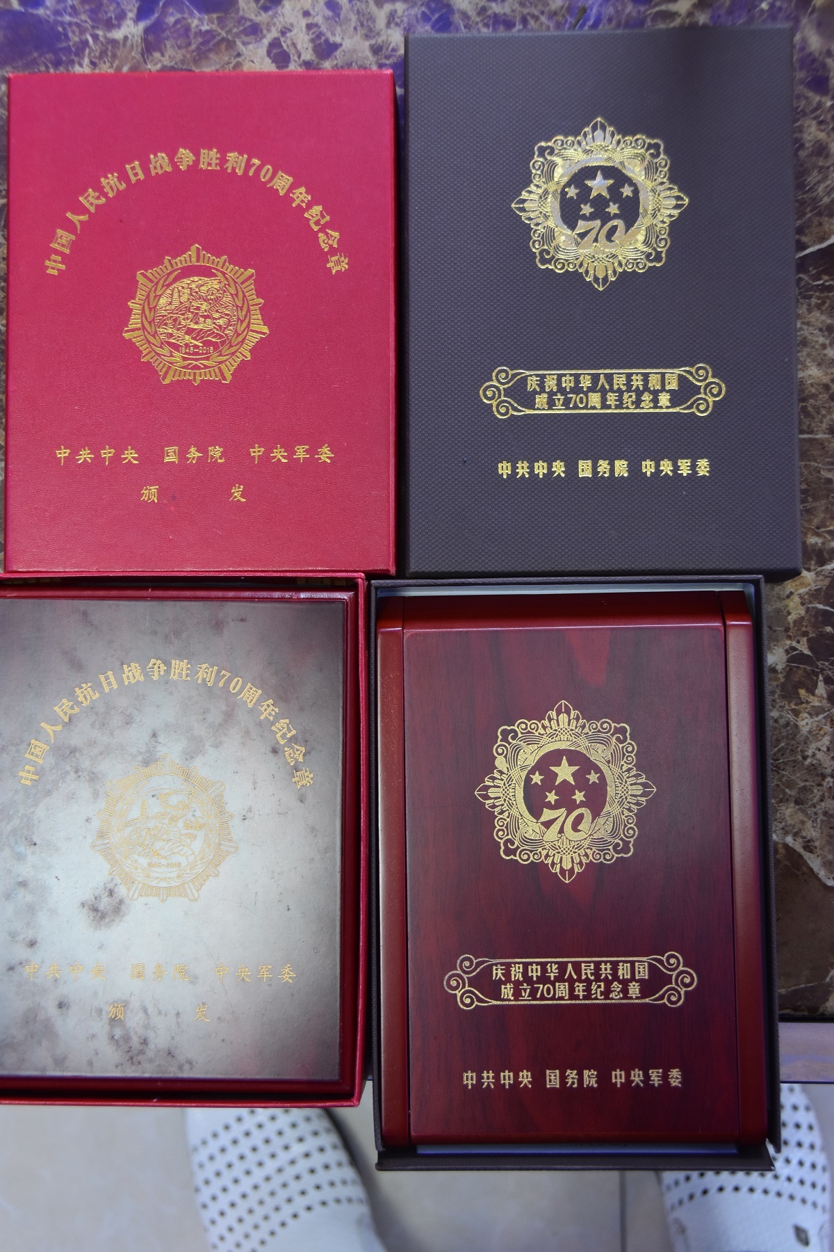 “梁大爷,上午好,明天就是抗战胜利75周年的纪念日,我们来看望您老人家了。”县人武部副部长李晨、荣县退役军人局副局长杨锡平一行走进青阳街道金碧社区梁定江家,与梁大爷亲切交谈。老人用左手指着桌上的立功勋章又捏了捏空空的右手衣袖说到,“这些是我曾经参加抗日作战所获的奖章,这条手臂也被日本人给炸断的”。