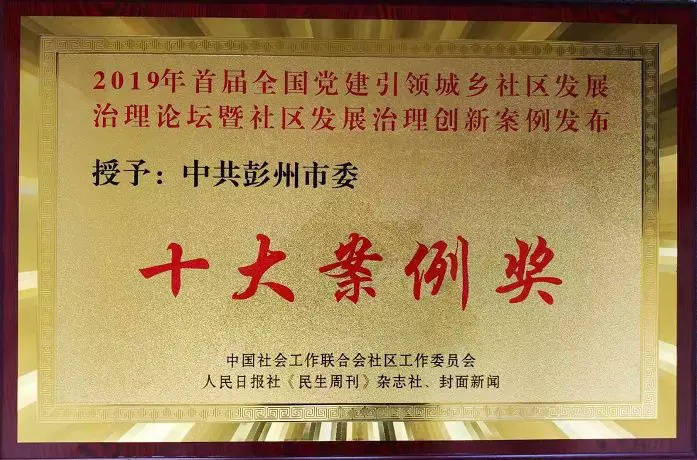荣获“2019社会治理创新典范城市”;“彭州市推进乡村发展与治理双擎驱动”荣获“2019年中国民生示范工程”;“花村街模式”荣获“2019年全国党建引领城乡社区发展治理十大案例奖”;在全国首创“家和促进”前端共治体系,成为“社治+法院”的前端共治体系典范……