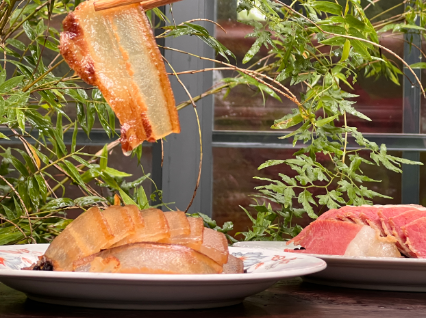 拿一块做好的梁家腊肉,切薄片,放豆豉,上锅蒸,不一会儿,一份地道风味的腊肉就此出炉。夹起一片,肥肉油亮水光,瘦肉红润酥香,令人垂涎三尺。梁家小店的腊肉可蒸可炒,香味浓郁,并且具有肥而不腻的的特点。所以无论是自家食用,还是走亲访友用来送礼都十分合适。