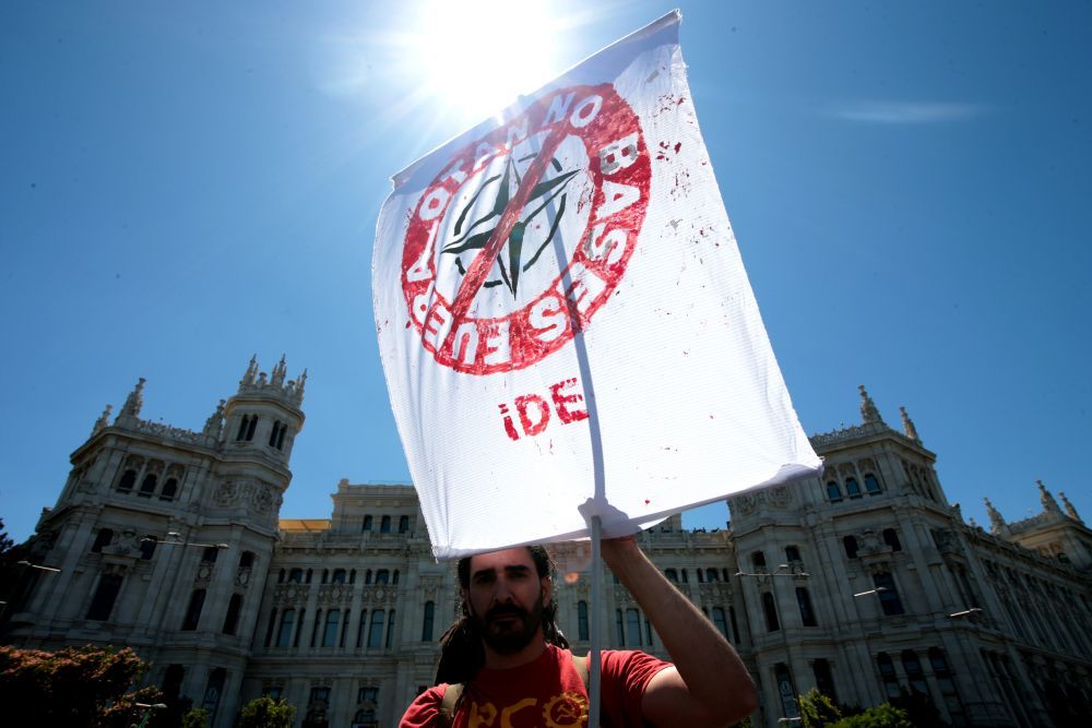 6月26日,在西班牙首都马德里,数千人参加反对北约、呼吁世界和平大游行。(新华社发,胡安·卡洛斯·罗哈斯摄)