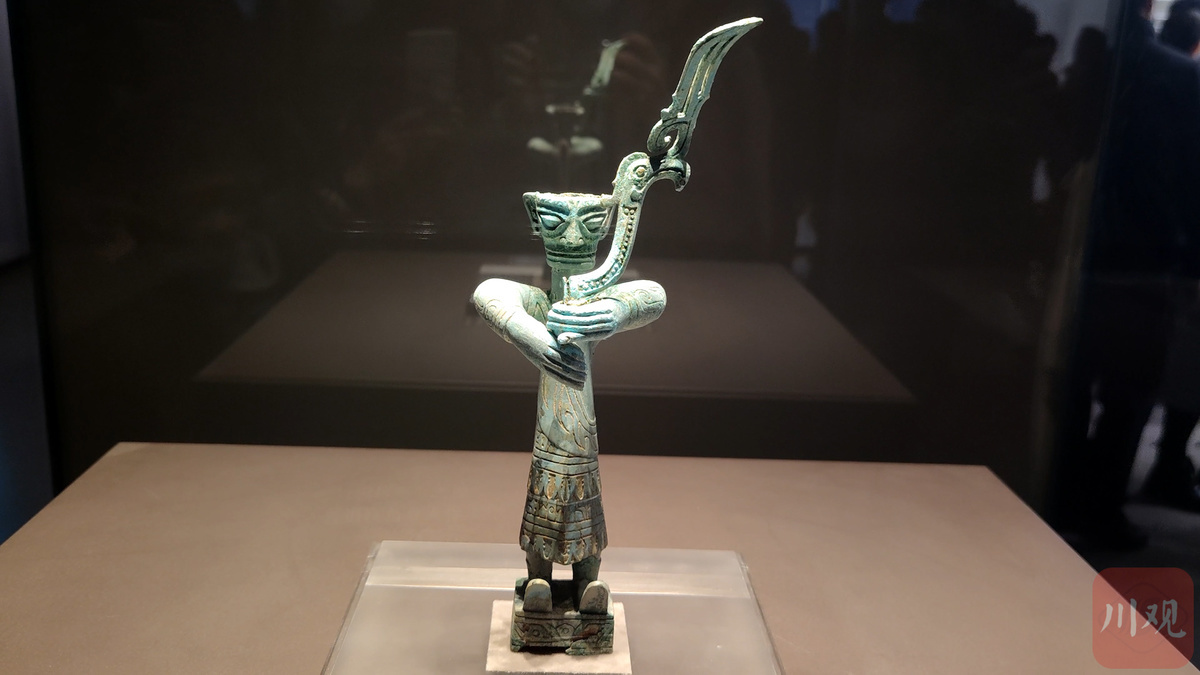 青铜持鸟立人像,商代晚期,2021年三星堆三号祭祀坑出土 川观新闻记者 吴枫 摄