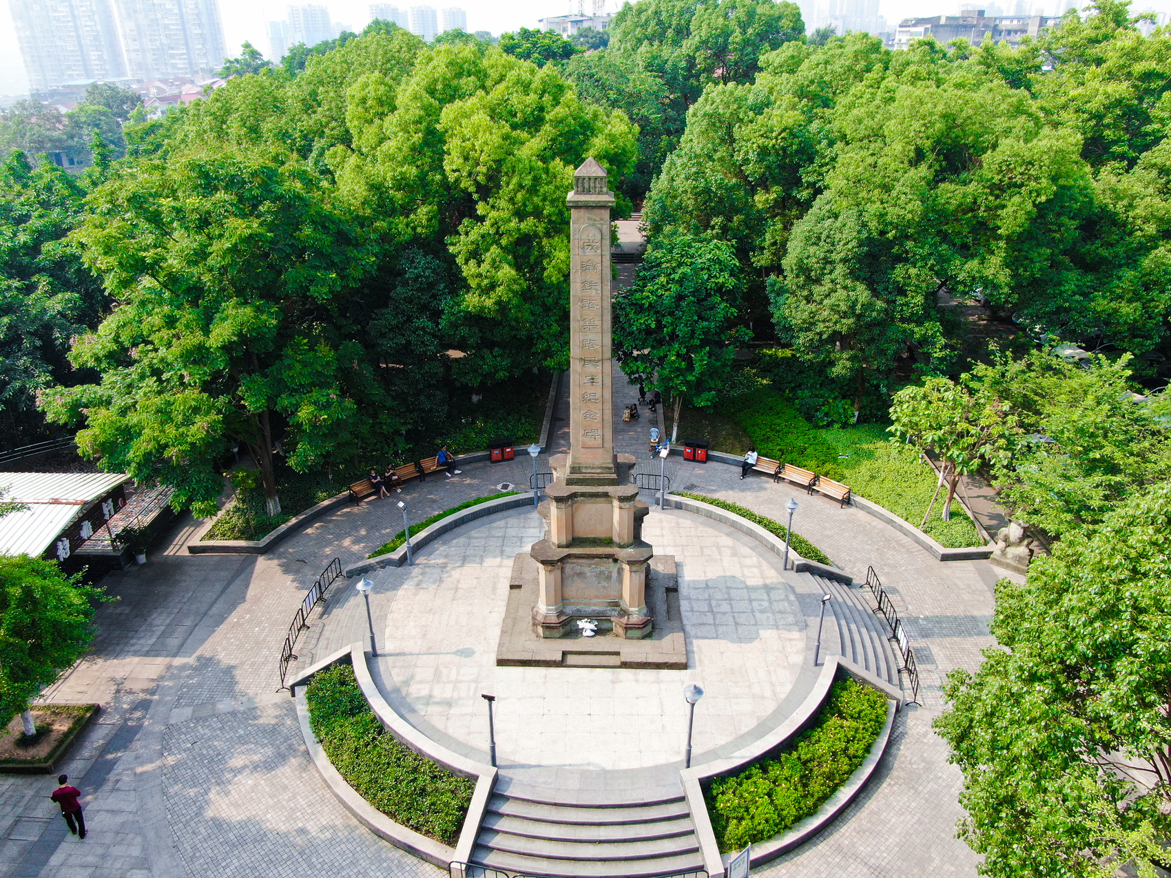 6月24日上午,内江市市中区梅山公园中央,一座方柱石碑在朝阳照射下熠熠生辉。石碑高约14米,正反两面都刻有“成渝铁路筑路民工纪念碑”11个大字,斑驳的外表透出庄严的气息。